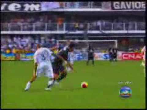 Elias tocou por entre as pernas de Fabiano Eller para que a bola chegasse a Ronaldo em condições de concluir sem marcação. Mas o zagueiro santista fechou um pouco as pernas, a bola perdeu velocidade e saiu um pouco da trajetória da corrida do Fenômeno em direção ao gol.